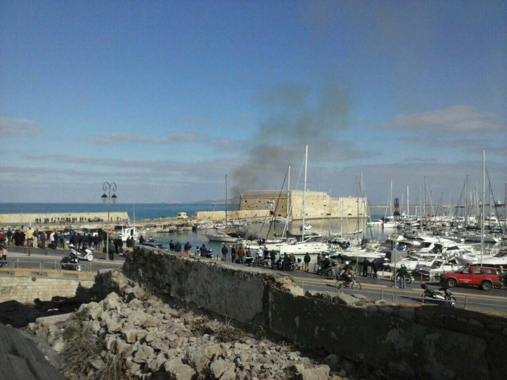 Στις φλόγες σκάφος στο Ενετικό Λιμάνι του Ηρακλείου