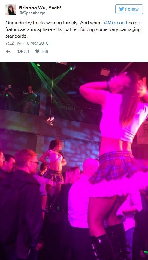Για να κάνει πιο ενδιαφέρουσα μία εκδήλωσή της, η εταιρεία Microsoft είχε την φαεινή ιδέα να προσλάβει χορεύτριες οι οποίες, ντυμένες μαθήτριες, ανέλαβαν το ρόλο της ψυχαγωγίας ενώ λικνίζονταν στους ρυθμούς της μουσικής πετώντας και την... μπλούζα τους!