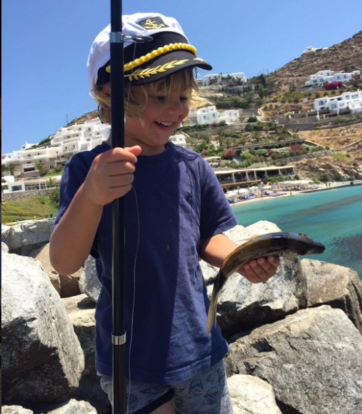 Ο γιος και η κόρη της Abrosio βρήκαν την ευκαιρία να ψαρέψουν στη Μύκονο