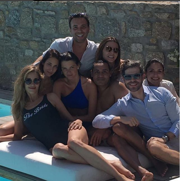 Με ένα ολόσωμο μαγιό που γράφει «The Bride» η Ana ποζάρει με τους φίλους της στο φακό