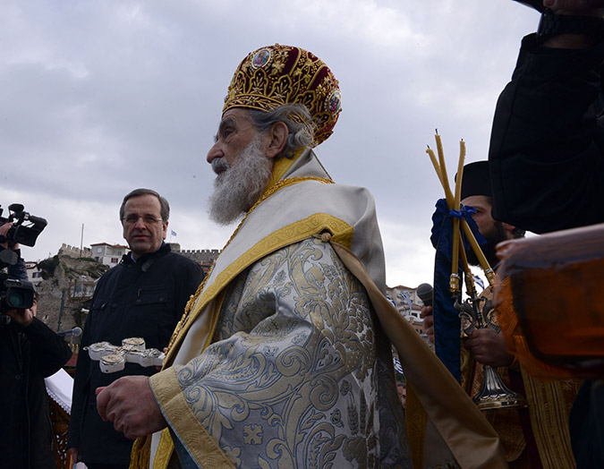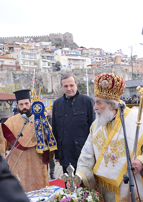 «Yγεία σε όλους τους ΄Ελληνες και προκοπή στην πατρίδα μας τώρα που σηκώθηκε στα πόδια της να μην κυλήσει ξανά» ευχήθηκε ο πρωθυπουργός Αντώνης Σαμαράς μετά την τελετή της κατάδυσης του τιμίου σταυρού στο λιμάνι της Καβάλας όπου βρέθηκε στο πλαίσιο της περιοδείας του στην Θράκη και στην Μακεδονία.