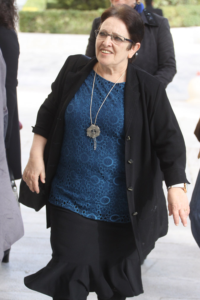 Στα μαύρα και η Αλέκα Παπαρήγα, η οποία επέλεξε ένα βαθύ μπλε μπλουζάκι για να «σπάσει» τη μονοτονία.