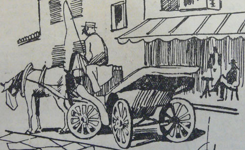 Επί τέλους το γκαρσόνι του έφερε ένα ουίσκι. Το εκύτταζε με περιέργειαν κ' εκύτταζε και το γκαρσόνι ως δια να εξηγήση ότι και κάτι άλλο εζήτησεν εκτός από ουίσκι, αλλά δεν άργησε να το πάρη και να το πιή με μίαν ηγεμονική κίνησιν. Έπειτα, με σχήματα πλέον, ως να ευρίσκετο εις την χώραν των κωφαλάλων, έδωσε να καταλάβη το γκαρσόνι, ότι έπρεπε να δώση έξω εις τον αμαξάν μίαν μπύραν κ' ένα καλό κομμάτι ζαμπόνι. Το γκαρσόνι έσπευσε να εκτελέση την παραγγελίαν. Σε λιγάκι του είπε να το επαναλάβη. Το γκαρσόνι το επανέλαβεν. Η ιδέα του αυτή να κεράση τον αμαξά του, εξάφνιασε γκαρσόνια και πελάτας. "Ένας τέτοιος κύριος και να σκέπτεται τον αμαξά του!". Πολύ περίεργον!