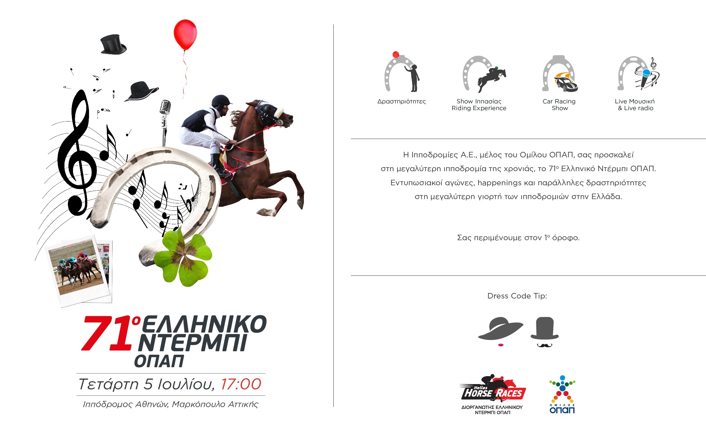 H μεγαλύτερη ιπποδρομία της χρονιάς ανοίγει και πάλι τις πόρτες την Τετάρτη 5 Ιουλίου στον ιππόδρομο Αθηνών στο Μαρκόπουλο.