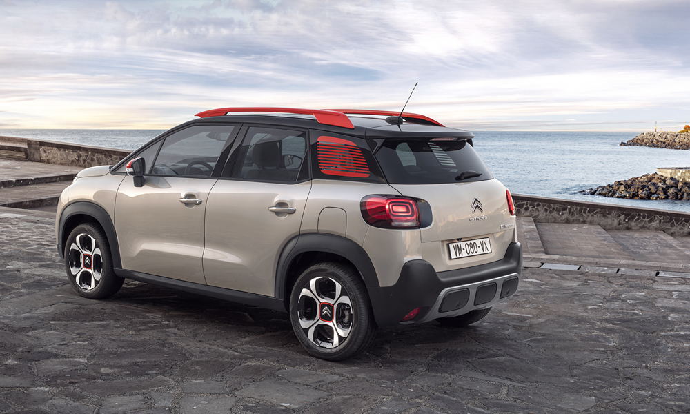 Κοιτώντας το πίσω μέρος, οι έντονοι ‘ώμοι’ του C3 Aircross υπογραμμίζουν το πλάτος και τη δυναμική του χαρακτήρα του. Τα πίσω φώτα με 3D εφέ προσδίδουν μια οικεία ομοιότητα με το νέο Citroën C3 και το Citroën C-Aircross concept. Το C3 Aircross, έρχεται για τη Citroën μετά την παρουσίαση του μοναδικού Citroën C5 Aircross και στόχος του είναι να κλέψει τις εντυπώσεις με την κομψότητα και την ξεχωριστή του προσωπικότητα. Η οδηγική άνεση και η προστασία που προσφέρει, υπογραμμίζεται από το φινίρισμα χρωμίου στην οροφή και το τοποθετούν στην κορυφή της κατηγορίας. Το βασισμένο στο C-Aircross Concept μοντέλο, δημιουργεί μια ισχυρή αντίθεση που εκτείνεται σε κάθε μια από τις δύο πίσω κολώνες. Η πρωτότυπη, υψηλά τοποθετημένη θέση οδήγησης του SUV της Citroën, έχει σχεδιαστεί ειδικά για να παρέχει ξεχωριστή άνεση στον οδηγό σε κάθε του διαδρομή.