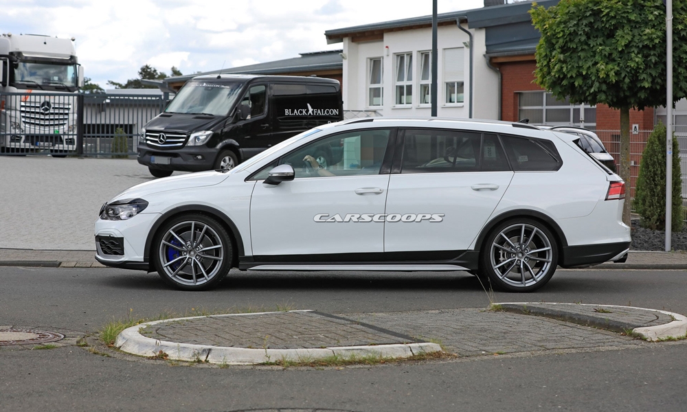 Μπορεί να είναι «ντυμένο» απλά και μόνο για να μας μπερδέψει. Ο «κατασκοπικός φακός» εντόπισε για πρώτη φορά στην έκδοση Alltrack, το Golf R Estate που θα αποτελέσει την εναλλακτική πρόταση στα SUV από τη Volkswagen. Οι πιο αξιοσημείωτες από τις «λεπτομέρειες» που προδίδουν το δυναμικό χαρακτήρα του μοντέλου, είναι οι ζάντες αλουμινίου που υποστηρίζονται από ένα σύστημα πέδησης υψηλής απόδοσης με μπλε δαγκάνες στα φρένα. Το πρωτότυπο έχει επίσης εξοπλιστεί με έναν πίσω προφυλακτήρα που έχει τροποποιηθεί ώστε να επιτρέπει τη φιλοξενία τεσσάρων απολήξεων της εξάτμισης. Φυσικά, το μοντέλο παραγωγής θα έχει αρκετές διαφορές, καθώς στο μπροστινό μέρος θα έχει πιο έντονα sport στοιχεία. Μπορούμε επίσης να περιμένουμε αεροδυναμικές πλευρικές προσθήκες στο αμάξωμα, μεγαλύτερη πίσω αεροτομή και πιο «επιθετικό» διαχύτη.