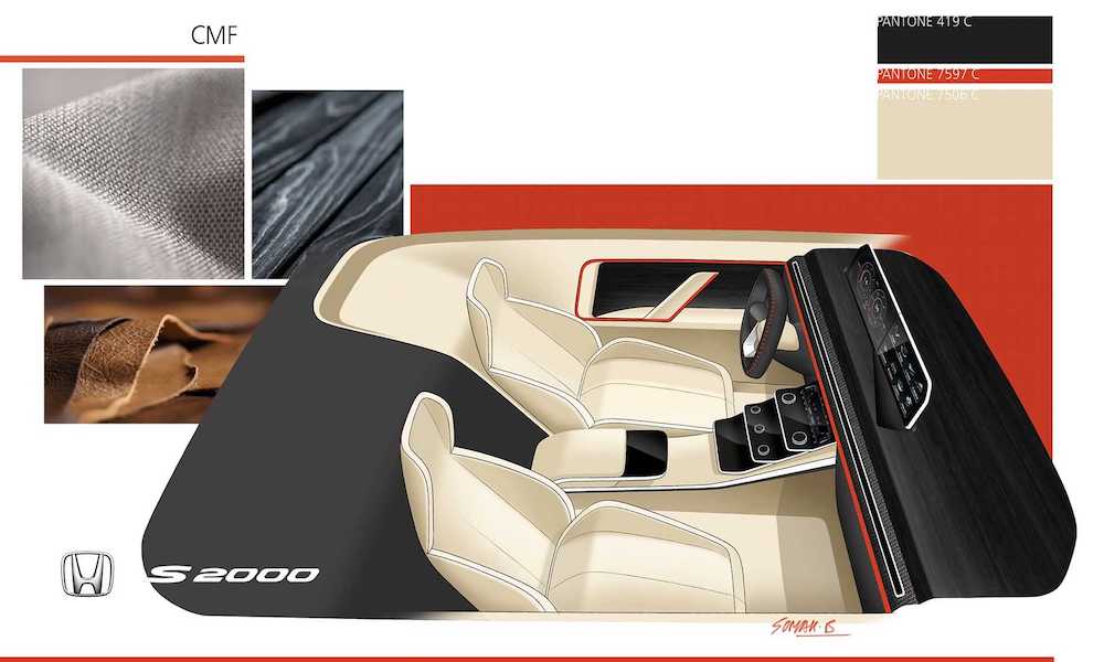 Στο εσωτερικό, το συγκεκριμένο S2000 μας προσφέρει τρία βασικά στοιχεία, με πρώτο το Mood Bar, που αποτελείται από μία μπάρα στο ταμπλό που ενσωματώνει τα ηχεία του ηχοσυστήματος, τον φωτισμό περιβάλλοντος και τους αεραγωγούς. Επίσης, η θέση του συστήματος infotainment μπορεί να ρυθμίζεται από τον οδηγό με σκοπό την καλύτερη δυνατή ορατότητα και την ευκολότερη ρύθμιση και τέλος η σχεδίαση της κεντρικής κονσόλας έχει εμπνευστεί από την αρχιτεκτονική των ιαπωνικών παγόδων.