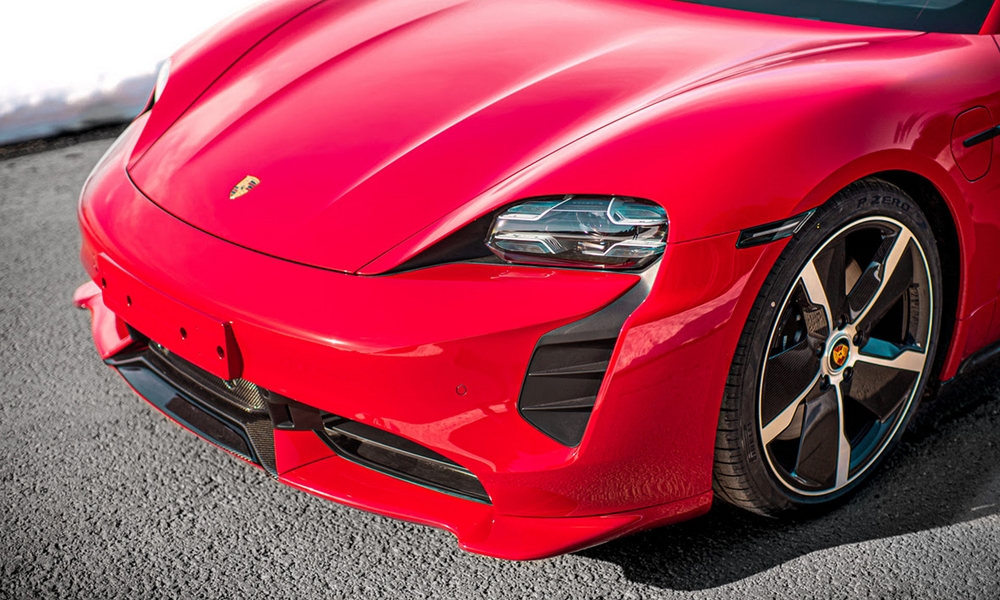 Αυτό που καταφέρνει με τις συγκεκριμένες επεμβάσεις στην Taycan Turbo S η Zyrus, είναι μια διακριτική τόνωση της επιθετικότητας στην εμφάνιση, αποφεύγοντας τις υπερβολές, με ένα bodykit που μπορεί να τοποθετηθεί και στις Taycan Turbo και Taycan 4S. Μπροστά, το spliter που έχει κατασκευαστεί από ανθρακόνημα και έχει κάποια σημεία του βαμμένα αλλά και κάποια με εμφανές το εξωτικό υλικό, δίνει τον τόνο. Η συνέχεια αφορά στους μαρσπιέ εκατέρωθεν του αμαξώματος, όπου και πάλι το υλικό για την κατασκευή τους είναι το ανθρακόνημα.