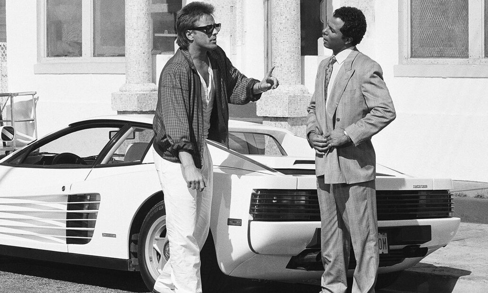 H λευκή Testarossa μπήκε στα δρώμενα του Miami Vice μόλις στην τρίτη σεζόν της επιτυχημένης αστυνομικής σειράς καθώς μέχρι τότε ο πρωταγωνιστής, Sonny Crockett, που υποδυόταν ο Don Johnson οδηγούσε μια replica της Ferrari 365 Daytona Spyder η οποία βασιζόταν σε πλαίσιο από Corvette. Η επιτυχία της σειράς ώθησε την Ferrari να δωρίσει στην παραγωγή δύο Testarossa για τις ανάγκες των γυρισμάτων.