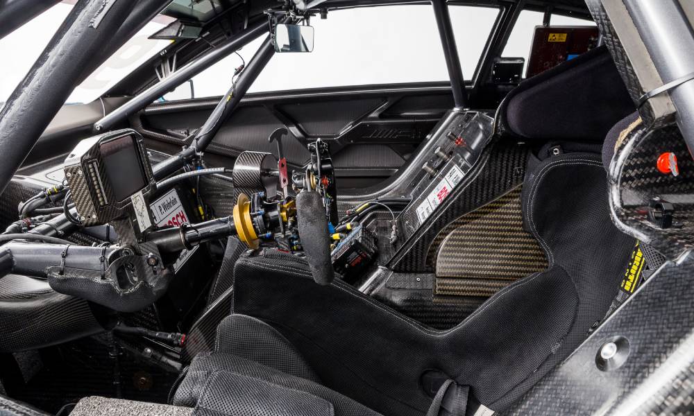 Στο λιτό εσωτερικό αυτό που κυριαρχεί είναι το ημι-ελλειπτικό τιμόνι στο οποίο βρίσκονται ενσωματωμένοι οι απαραίτητοι διακόπτες, το ψηφιακό κόκπιτ και το αγωνιστικό μπάκετ κάθισμα του οδηγού.