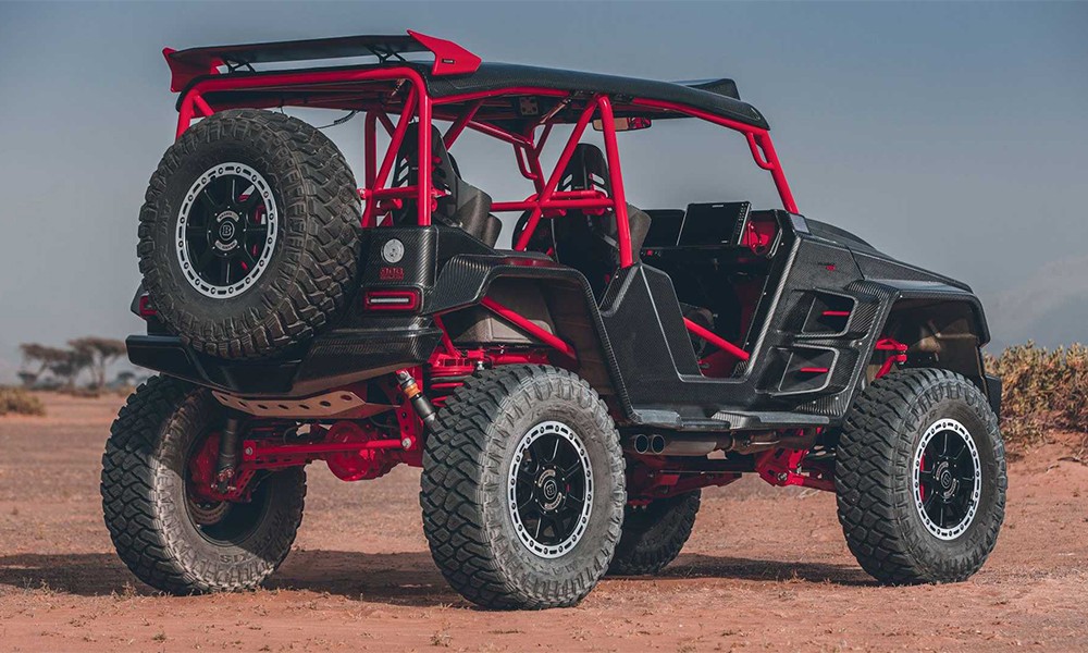 Δεν έχει πόρτες ή παράθυρα, αφήνοντας το εσωτερικό πλήρως εκτεθειμένο στα στοιχεία της φύσης, ενώ έχει ένα βαμμένο κόκκινο roll cage, που στην ουσία είναι μέρος του πλαισίου. Έχει φαρδιά φτερά, εισαγωγές αέρα στο καπό, LED τοποθετημένα στην οροφή και τελικά εξάτμισης σε μαύρο ματ χρώμα.