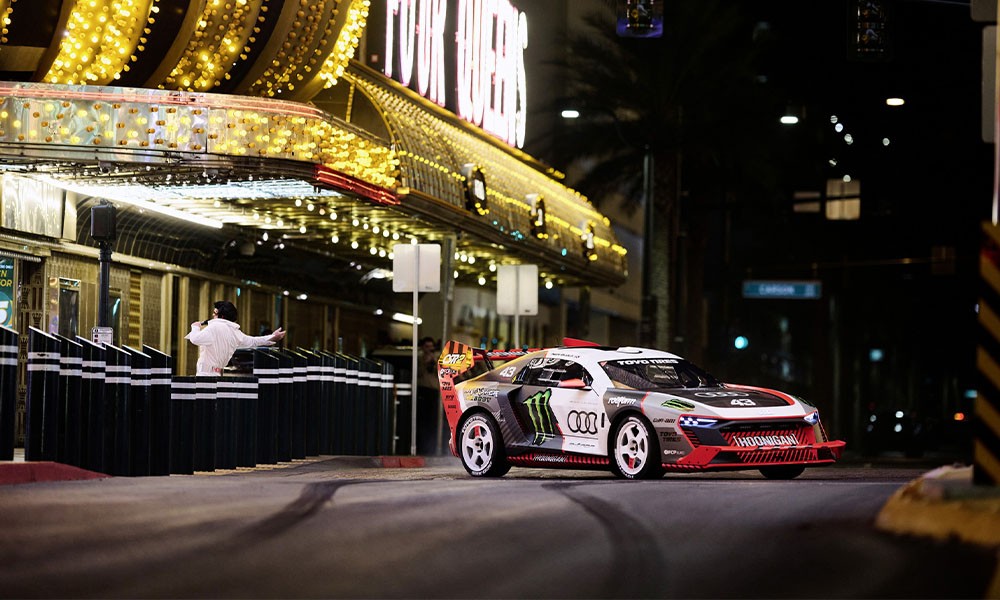 Στο video ο Ken Block κάνει τα δικά του με το ηλεκτρικό Audi το οποίο έχει δύο ηλεκτροκινητήρες από την Formula E. Και με ροπή στα 3.000 Νm είναι σε θέση να κάνουν τα λάστιχα να βγάζουν καπνούς σε μόνιμη βάση.