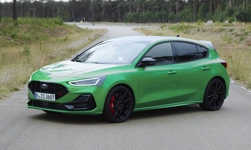 Περαιτέρω αποκλειστικές εξωτερικές λεπτομέρειες περιλαμβάνουν μαύρα περιγράμματα για τα λογότυπα ST αντί του στάνταρ χρωμίου. Ανάμεσα στα εντυπωσιακά χρώματα του αμαξώματος ξεχωρίζουν τα Agate Black, Fantastic Red, Frozen White, Magnetic, καθώς και το αποκλειστικό για το Focus ST, Mean Green.