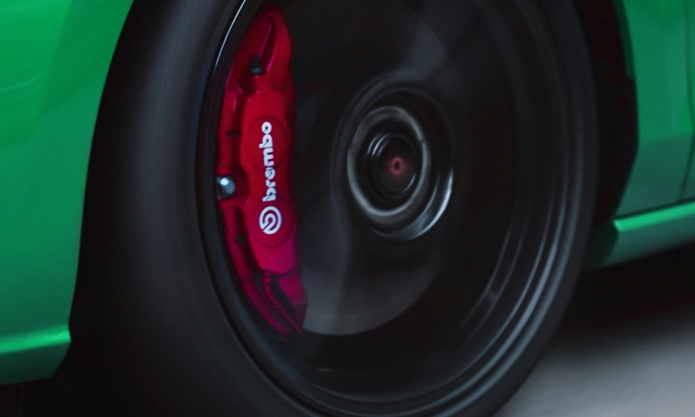 Η απόδοση του συστήματος πέδησης είναι επίσης βελτιστοποιημένη. Οι εμπρός δίσκοι είναι κατά 10% μεγαλύτεροι σε διάμετρο σε σχέση με τους στάνταρ των 330 mm και συνδυάζονται με σταθερές δαγκάνες τεσσάρων εμβόλων της Brembo για βελτιωμένο φρενάρισμα και παροχή μεγαλύτερης επιφάνειας για ταχύτερη διάχυση της θερμότητας, μειώνοντας έτσι το φαινόμενο της πτώσης της απόδοσης που προκαλείται από την αύξηση της θερμοκρασίας των φρένων κατά την οδήγηση στην πίστα.