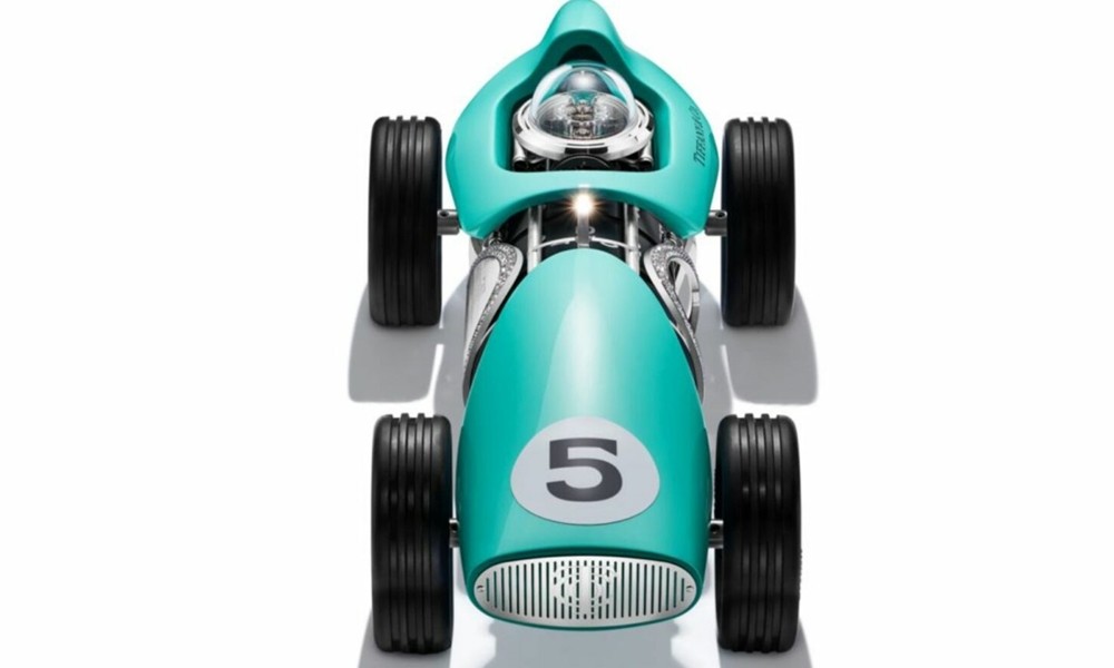 Τα αγωνιστικά μονοθέσια της δεκαετίας του 1950 ήταν η έμπνευση για τη δημιουργία και των δύο ρολογιών της Tiffany & Co. Με τροχούς από ανοξείδωτο χάλυβα και πραγματικά λάστιχα, το αυτοκίνητο ρολόι δείχνει το χρόνο με «βήμα» πέντε λεπτών. Οι κύλινδροι πάνω στους οποίους εμφανίζονται οι ενδείξεις του ρολογιού, είναι ορατοί από το πλάι μέσω ενός στρογγυλού ανοίγματος. Ο μηχανισμός του ρολογιού είναι ορατός κάτω από ένα διάφανο «κάλυμμα» στη θέση του οδηγού, ενώ στα ενδιαφέροντα χαρακτηριστικά του ρολογιού, συγκαταλέγεται τόσο η μάσκα σε στυλ ψυγείου με το λογότυπο Tiffany & Co, όσο και το εμπρός καπό του αυτοκινήτου, που παραπέμπει στο εμβληματικό κατάστημα της εταιρείας στην Πέμπτη Λεωφόρο της Νέας Υόρκης (γι’ αυτό έχει και το νούμερο 5 πάνω στο μοντέλο).