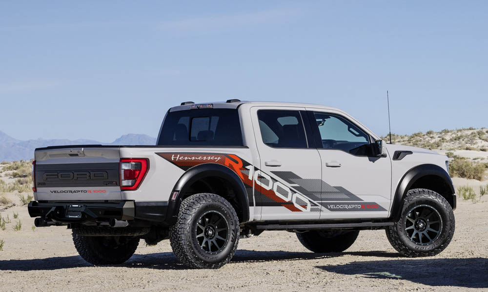 Σαν να μην έφτανε αυτό, οι άνθρωποι της Hennessey αποφάσισαν να επέμβουν στη συγκεκριμένη έκδοση και να την κάνουν ακόμα ισχυρότερη. Έτσι, επενέβησαν σε αυτόν αντικαθιστώντας τον μηχανικό υπερτροφοδότη με μεγαλύτερης διαμέτρου, τοποθέτησαν νέο σύστημα ψεκασμού και νέους αυλούς εισαγωγής αέρα. Επιπλέον, αναβάθμισαν το λογισμικό λειτουργίας της κεντρικής ηλεκτρονικής μονάδας. Το αποτέλεσμα των συγκεκριμένων παρεμβάσεων ήταν να αυξηθεί η μέγιστη ισχύς του κινητήρα στους 1,014 ίππους και η μέγιστη ροπή του στα 1.152 Nm, όπως ανακοινώνει η Hennessey. H εταιρεία μετονόμασε την έκδοση σε F-150 VelociRaptorR 1000. Εκτός από τις μηχανολογικές παρεμβάσεις, η εταιρεία έκανε και κάποιες αισθητικές προσθήκες στο αμάξωμά του. Έτσι, τοποθέτησαν νέους, πιο ογκώδεις, προφυλακτήρες και pull bar με ενσωματωμένη μπάρα LED (εμπρός). Επιπλέον, τοποθέτησαν μεγαλύτερους τροχούς 20 ιντσών.