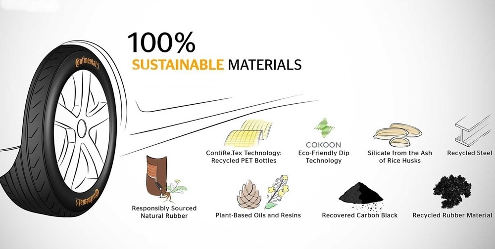 Ως ένας από τους μεγαλύτερους κατασκευαστές ελαστικών παγκοσμίως, η Continental έχει προϊόντικό στόχο την παραγωγή από βιώσιμα και ανακυκλωμένα υλικά. Με πλαστικά μπουκάλια, πικραλίδες και φλοιούς ρυζιού, η Continental θα συνθέτει το μίγμα μαζί με καουτσούκ, προκειμένου να κατασκευάζει τα ελαστικά για τα αυτοκίνητα κάθε κατηγορίας στο άμεσο μέλλον. Ο στόχος της εταιρείας είναι να καταφέρνει το 100% της παραγωγής της, να προκύπτει από βιώσιμο μίγμα στο οποίο το μεγαλύτερο ποσοστό του θα αποτελείται από ανακυκλωμένα υλικά. Το φυσικό καουτσούκ προέρχεται από συγκεκριμένα δέντρα και θα συνεχίσει να αποτελεί αναντικατάστατο συστατικό για την παραγωγή ελαστικών στο μέλλον. Ωστόσο, θα συμπληρωθεί από άλλους φυτικούς πόρους, όπως οι πικραλίδες, οι οποίες είναι επίσης πηγή καουτσούκ. Οι φλοιοί κόκκων ρυζιού, μπορούν να υποκαταστήσουν το πυρίτιο που επίσης χρησιμοποιείται στην κατασκευή ελαστικών.
