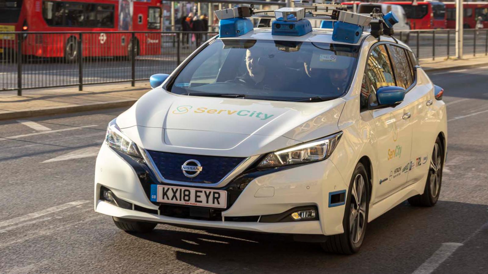 Έχοντας υπόψη αυτά τα πλεονεκτήματα, η Nissan έχει συμμετάσχει στο έργο ServCity προκειμένου να μελετήσει πώς να δημιουργήσει μια υπηρεσία τύπου “Robotaxi” σε αστικές περιοχές και ποιες υποδομές θα χρειαζόταν για την υποστήριξή της. Το αυτόνομο όχημα ServCity, κατασκευασμένο πάνω στο αμιγώς ηλεκτρικό Nissan LEAF, ολοκλήρωσε με επιτυχία διάφορες δοκιμές στο πραγματικό περιβάλλον του Smart Mobility Living Lab (SMLL) που εδρεύει στο Greenwich του Λονδίνου.
