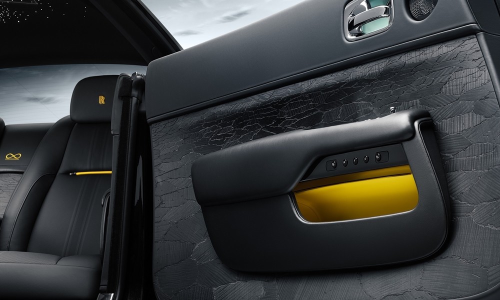 Η ίδια απόχρωση κοσμεί τη βάση του Spirit of Ecstasy που δεσπόζει στο πάνω μέρος της μάσκας, η οποία αποτελεί παραπομπή σε ένα αυτοκίνητο που έκανε ρεκόρ ταχύτητας τη δεκαετία του 1930, με την ονομασία Thunderbolt, το οποίο χρησιμοποιούσε ένα ζεύγος V12 κινητήρων της Rolls-Royce για να πετύχει μέγιστη ταχύτητα 575 χλμ./ώρα στα αχανή Salt Flats του Bonneville. Η αντίθεση που δημιουργεί η χρήση του έντονου κίτρινου χρώματος, συνεχίζεται και στην καμπίνα του μοντέλου, όπου τα κίτρινα καθίσματα και οι αντίστοιχες λεπτομέρειες στο ταμπλό, το τιμόνι και τα πάνελ των θυρών, δημιουργούν μια πολύ ιδιαίτερη εικόνα. Ανάμεσα στις λεπτομέρειες που κάνουν την τελική αυτή έκδοση του μοντέλου να ξεχωρίζει, είναι και το κάλυμμα του κινητήρα.