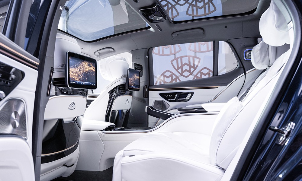Στο ταμπλό, υπάρχει η μεγάλη οθόνη «MBUX Hyperscreen», το δέρμα nappa που καλύπτει όλο το εσωτερικό είναι βαμμένο με τη χρήση φυτικών ουσιών, το ηχοσύστημα είναι κορυφαίο και το επίπεδο εξοπλισμού υπερβαίνει αυτό που μπορεί να έχει κάποιος στην Mercedes-Benz EQS SUV. Επίσης, ο ιδιοκτήτης μπορεί να διαμορφώσει τα υλικά και τον χρωματισμό τής νέας Mercedes-Maybach EQS SUV σε συνεργασία με τους απόλυτα εξειδικευμένους τεχνίτες του τμήματος «Maybach Manufaktur». Τέλος, η ηλεκτρονικά ελεγχόμενη αερανάρτηση του καινούργιου μοντέλου είναι ρυθμισμένη να παρέχει ακόμα μεγαλύτερη άνεση, ενώ το εσωτερικό είναι ακόμα πιο ήσυχο και απομονωμένο από τους εξωτερικούς θορύβους χάρη στην καλύτερη ηχομόνωση.