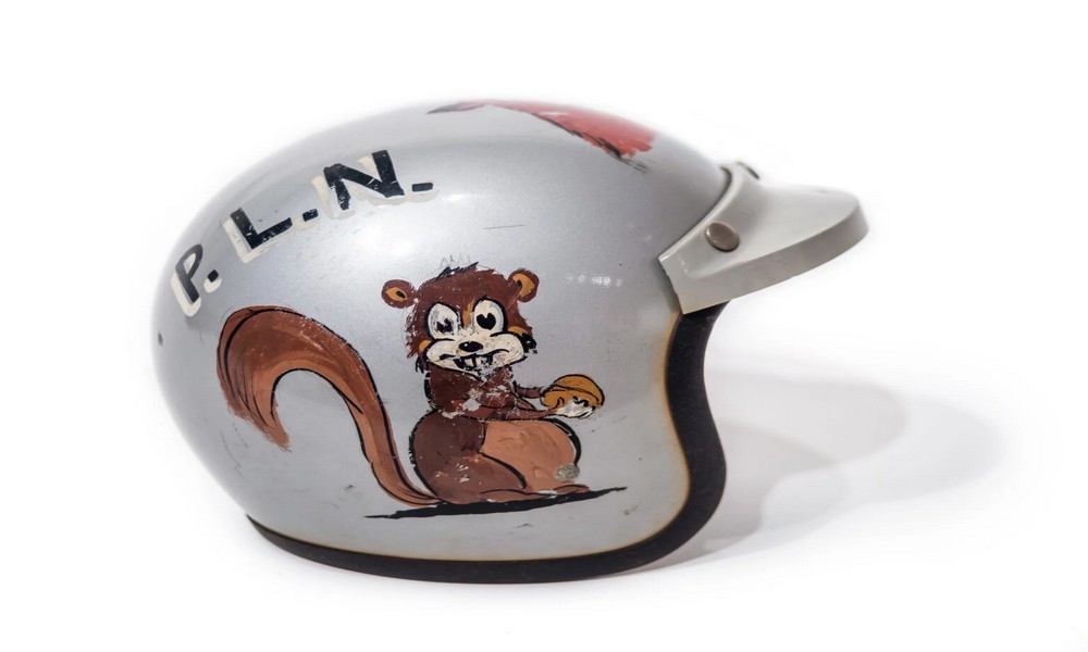 Ένα από τα πιο χαρακτηριστικά συλλεκτικά κομμάτια που βγαίνουν στο σφυρί, είναι το ζωγραφισμένο στο χέρι κράνος της Bell, που έχει τα αρχικά του Αμερικάνου ηθοποιού και τρεις φιγούρες ζώων-καρτούν, έναν κόκορα, ένα σκιουράκι και το κογιότ.