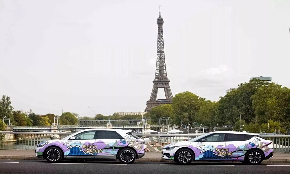 Στο Παρίσι, τα αυτοκίνητα τέχνης θα εκτίθενται κοντά σε ιστορικά ορόσημα, όπως ο Πύργος του Άιφελ και το Μουσείο του Λούβρου. Κάθε ένα από αυτά είναι τυλιγμένο σε ένα πολύχρωμο σχέδιο γκράφιτι με διάσημες εικόνες από τη Busan, όπως κύματα του ωκεανού, τη γέφυρα Gwangan, γλάρους και ένα σύνθημα που γράφει “Το Busan είναι έτοιμο”. Κάθε ένα από τα καλλιτεχνικά αυτοκίνητα δημιουργήθηκε σε συνεργασία με τον Κορεάτη καλλιτέχνη γκράφιτι Jay Flow.