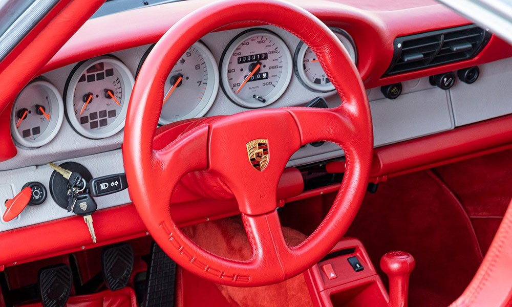 Με μόλις 10 χιλιόμετρα στο ενεργητικό της, η σπάνια Γερμανίδα εξαφανίστηκε σε μια ιδιωτική συλλογή, για να μην την ξαναδεί κανείς, για τουλάχιστον δύο δεκαετίες. Πουλήθηκε στον τελευταίο ιδιοκτήτη το 2017, αλλά η Porsche παρέμεινε ανέγγιχτη και ακίνητη. Εάν ο νέος ιδιοκτήτης θέλει να τη βγάλει στο δρόμο, φανταζόμαστε ότι θα χρειαστεί σημαντική αναμόρφωση. Ολοκληρωμένη σε Polar Silver Metallic, ο VIP ιδιοκτήτης ανέθεσε στην Porsche να εξοπλίσει την RSR του με μερικά πολιτισμένα χαρακτηριστικά. Αυτό περιλαμβάνει ένα δερμάτινο εσωτερικό Guards Red, με το δέρμα να εκτείνεται στο headliner, στο κάτω ταμπλό, στην κολόνα του τιμονιού, ακόμη και στο roll cage.