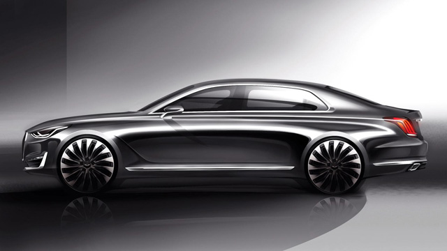 Στην οθόνη σας βλέπετε δύο teaser σκίτσα του Genesis G90 που ξεχωρίζει από τη μεγάλη αλά Aston Martin μάσκα (ίσως να θυμίζει και λίγο Ford Mondeo Vignale) και τους προβολείς με τα LED στοιχεία. Από το πλάι διακρίνεται η σιλουέτα μίας κλασικής λιμουζίνας με μεγάλους τροχούς. Μέχρι να μάθουμε περισσότερες πληροφορίες να πούμε πως η Hyundai έχει ήδη προγραμματίσει μέχρι το τέλος της δεκαετίας έξι μοντέλα με τα σήματα της Genesis. Πρόκειται για το G80 (που θα αντικαταστήσει το Hyundai Genesis), το μικρότερο G70, ένα σπορ κουπέ, ένα μικρό crossover και ένα μεγαλύτερο SUV.