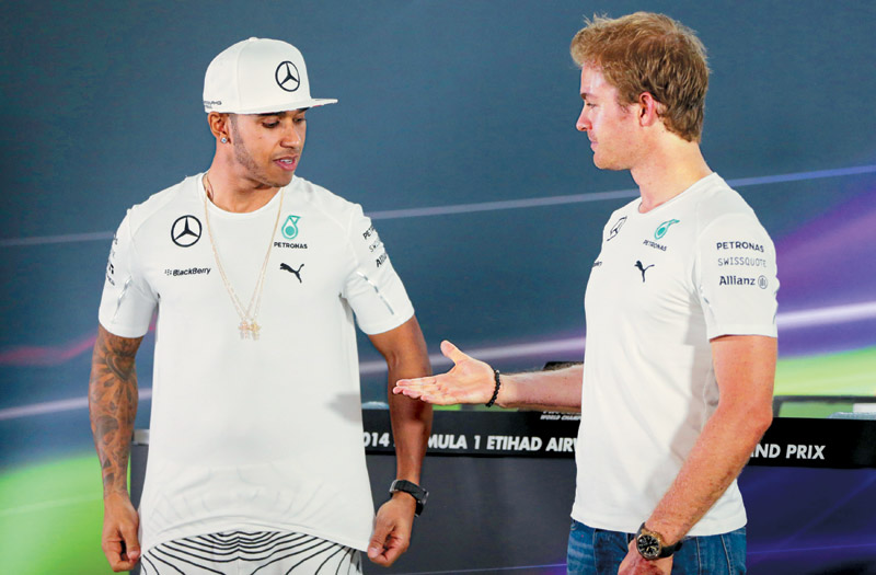 Από αγωνιστική -και ίσως όχι μόνο- άποψη, ο Νίκο και ο Λιούις μεγάλωσαν μαζί. Ξεκίνησαν από τα καρτ και από το 2013 η μεταξύ τους κόντρα κορυφώθηκε στη Formula 1, καθώς οι δυο τους βρέθηκαν στην ίδια ομάδα, τη Mercedes. Αμέσως μετά από το πρωτάθλημα που κέρδισε το 2014 κατατροπώνοντας τον Ρόσμπεργκ, ο Χάμιλτον είχε πει μερικές σκληρές αλήθειες για τον αντίπαλό του: «Η διαφορά μας είναι ότι εγώ γεννήθηκα φτωχός. Μεγάλωσα με στερήσεις, έμαθα να εκτιμώ τα πράγματα, να βρίσκω λύσεις και να αντέχω στην πίεση. Ο Νίκο δεν έχει ζητήσει ποτέ λογαριασμό στη ζωή του, δεν κυκλοφορεί με χρήματα, αυτά είναι ζητήματα που πάντοτε τα ρυθμίζουν άλλοι για χάρη του. Επειδή μεγάλωσε στα πούπουλα, την κρίσιμη στιγμή λυγίζει».
