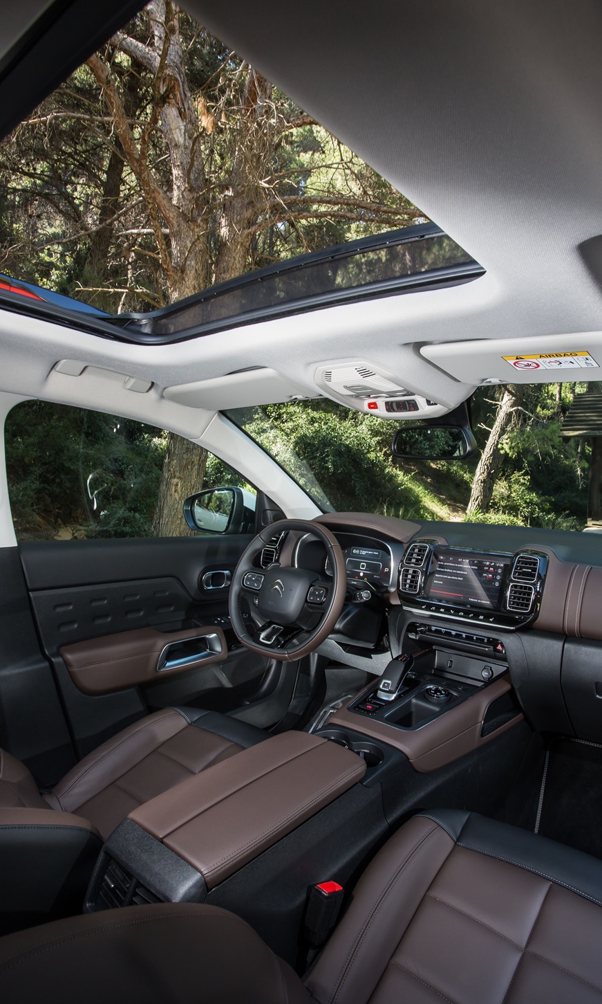 Τα τρία ξεχωριστά, ισομεγέθη καθίσματα, με ρυθμιζόμενη κλίση πλάτης σε πέντε θέσεις και συρόμενη βάση κατά 15 cm δημιουργούν το κατάλληλο ευάερο καθιστικό προκειμένου να περάσεις άνετα την ώρα σου μέχρι να ολοκληρωθεί το πολύωρο ταξίδι. Πιο πίσω, ο χώρος αποσκευών δύναται να φτάσει από τα 580 lt σε 5θέσια διαμόρφωση έως τα 1.630 lt σε διθέσια, κατάλληλος ακόμη και για μετακόμιση. Κατά τα άλλα, η ποιότητα συναρμογής των πλαστικών μερών απαντά ακόμη και στους σκληρούς επικριτές της Citroën παρότι και πάλι εξοικονομήθηκε κόστος με κάποια σκληρά πλαστικά να δίνουν το «παρών» σε αρκετά μέρη του ταμπλό. Από την άλλη, η εργονομία δεν κρύβει γρίφους, ενώ η εποπτική θέση οδήγησης θα αρέσει σίγουρα και στα δυο φύλα. Ακόμη και στη βίαιη μετάβαση από άσφαλτο σε χώμα, το C5 AirCross σε αποζημιώνει με τον τρόπο που αντιμετωπίζει εξωγενείς παράγοντες. Το γενναιόδωρο εύρος της ανάρτησης δείχνει ικανό να καταπιεί κυριολεκτικά τα πάντα. Χάρη στο ηχομονωτικό παρμπρίζ και την προσεγμένη μόνωση, ο θόρυβος από τον αέρα και τον δρόμο είναι περιορισμένος.