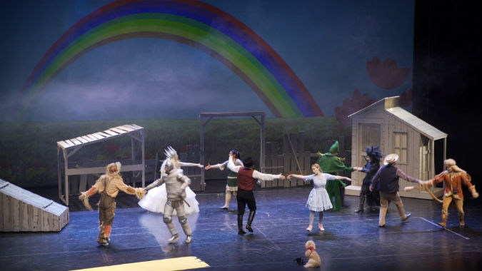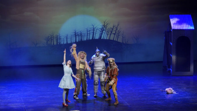 H Νάντια Μπουλέ υποδύεται τη μικρή Ντόροθυ στον “Μαγό του Οζ” έχοντας στο πλευρό της το σκιάχτρο, τον τενεκεδένιο και το λιοντάρι
