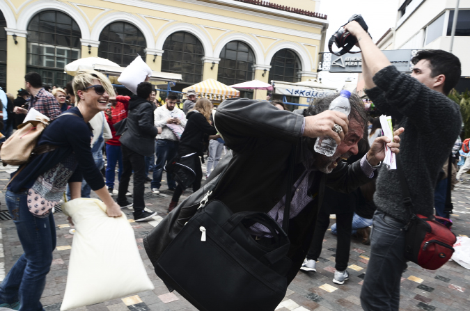 Η αλήθεια είναι πως υπάρχει πλέον από μία παγκόσμια ημέρα για τα πάντα: από σοβαρά ζητήματα όπως η Παγκόσμια Ημέρα κατά του Καρκίνου ή η Παγκόσμια Ημέρα για το Νερό μέχρι λιγότερο σοβαρά όπως η Παγκόσμια Ημέρα Αριστερόχειρων ή η… Παγκόσμια Ημέρα Μπριζόλας και Πεολειχίας. Στη δεύτερη κατηγορία ανήκει και η ημέρα μαξιλαροπόλεμου που γιορτάστηκε χτες το μεσημέρι στο Μοναστηράκι. Και τα στιγμιότυπα που χάρισε στον φακό είναι απολαυστικά.