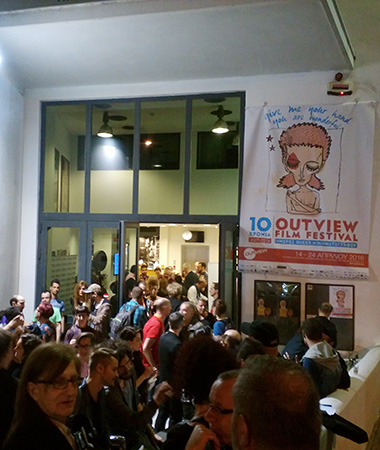 Την Πέμπτη το βράδυ στην Ταινιοθήκη της Ελλάδος πραγματοποιήθηκε η τελετή έναρξης του Φεστιβάλ Queer Κινηματογράφου Outview, που φέτος κλείνει τα 10 χρόνια στην Αθήνα. Σε μια κατάμεστη αίθουσα τα φώτα έκλεισαν και τα πάντα ξεκίνησαν υπό τους ήχους του Rock ‘n’ Roll Suicide του David Bowie, από το οποίο το φετινό φεστιβάλ δανείστηκε το tagline του: “Give me your hand, you are wonderful” (Δωσ’ μου το χέρι σου, είσαι υπέροχος/η). Μια ανθρώπινη αλυσίδα σχηματίστηκε από όλους τους ανθρώπους που στηρίζουν το φεστιβάλ όλα αυτά τα χρόνια, ακτιβιστές για lgbtq ζητήματα, και συγκεκριμένα μέλη της Θετικής Φωνής, των Οικογενειών Ουράνιο Τόξο, της Coloryouth, την οργάνωση ΛΟΑΤ-ΑμεΑ και του περιοδικού Antivirus.