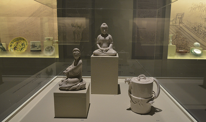 Ειδώλια και ομοιώματα της δυναστείας Τανγκ (7ος–10ος αι. μ.Χ.) ζωντανεύουν την καθημερινότητα και το υπερβατικό σύμπαν της πρώιμης Κίνας. Η αισθητική των κεραμικών της δυναστείας Σονγκ (11ος–13ος αι. μ.Χ.) τα κατέστησε πρότυπα για επαΐοντες στην Κίνα και καλλιτέχνες στην Ευρώπη του 20ού αι. Οι πολύχρωμες πορσελάνες της δυναστείας Μινγκ (14ος–17ος αι. μ.Χ.) εδραίωσαν την πρωτοκαθεδρία της Κίνας στην παγκόσμια αγορά. Τέλος, τα υβρίδια που δημιούργησε η όσμωση Ανατολής και Δύσης από το 16ο ως το 19ο αι. μ.Χ. αποτελούν την απαρχή της αφήγησης για τη γνωριμία της Δύσης με την Κίνα.