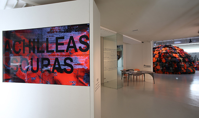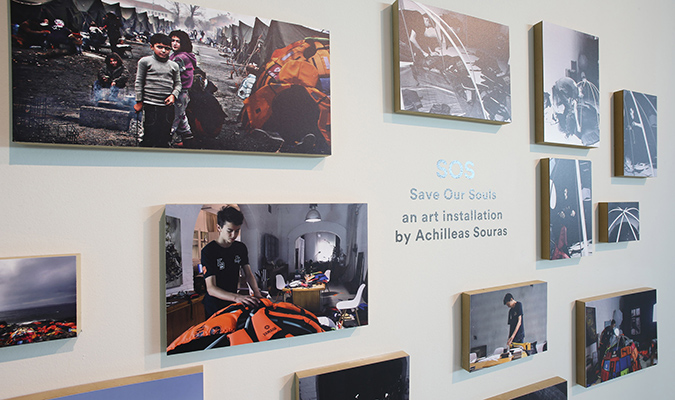 Ο καλλιτέχνης Αχιλλέας Σούρας χρησιμοποίησε εκατοντάδες πεταμένα σωσίβια για την κατασκευή ιγκλού για την έκθεση της Moroso, “SOS Save Our Souls”, στην εβδομάδα design στο Μιλάνο. Ο 16χρονος, ο οποίος έχει ήδη παρουσιάσει ένα παρόμοιο πρότζεκτ στο Ναυτικό Μουσείο της Βαρκελώνης, χρησιμοποίησε σωσίβια που συνέλεξε από τις ακτές της Λέσβου - το ελληνικό νησί το οποίο έγινε σημείο άφιξης των προσφύγων που μπαίνουν στην Ευρώπη.