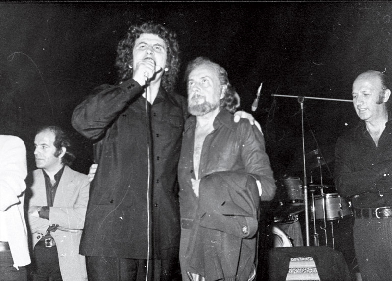 Αγκαλιά με τον Γιάννη Ρίτσο τραγουδά «τη Ρωμιοσύνη μην την κλαις». «Η Ρωμιοσύνη θα υπάρχει για πάντα, ακόμη κι αν στην επιφάνεια της ζωής μας επικρατούν δυνάμεις που ανήκουν στο χάος», υποστηρίζει