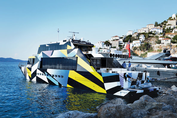 «Ο Δάκης, όπως τον αποκαλούν οι άνθρωποι στο νησί, είναι Κύπριος και ένας από τους πιο διάσημους άνδρες σε αυτή την πλευρά του Αιγαίου. Έχοντας ένα από τα ομορφότερα σπίτια του νησιού, έφτιαξε πριν έξι χρόνια και ένα μικρό παράρτημα του Αθηναϊκού του ιδρύματος τέχνης ΔΕΣΤΕ, αγοράζοντας ένα μικρό σφαγείο που βρίσκεται στο νησί και βάζοντας τον καλλιτέχνη Jeff Koons να φτιάξει ένα σχέδιο που θα κάλυπτε το γιοτ του. Το Guilty, είναι μια καλλιτεχνική εξτραβαγκάντζα ανάμεσα στα σοβαρά και σεμνά σκάφη που έρχονται στο νησί. Αλλά έτσι αρέσει στον Δάκη».