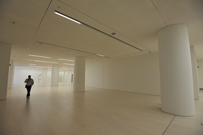 Αυτή τη στιγμή το ΕΜΣΤ στο Φιξ, σε έναν χώρο συνολικής επιφάνειας άνω των 18.000 τετ.μέτρων, μοιρασμένο σε τέσσερις ορόφους συν μία ταράτσα-γήπεδο με συγκλονιστική θέα, σχεδόν σε όλο το λεκανοπέδιο της Αττικής, είναι εντελώς άδειο. Έχει μόλις ολοκληρωθεί -και με έξοδα που κάλυψαν χορηγοί- η μεταφορά των έργων τέχνης που συνθέτουν την σημαντική μόνιμη συλλογή του Μουσείου από το Ωδείο Αθηνών όπου φιλοξενούνταν έως πρόσφατα.