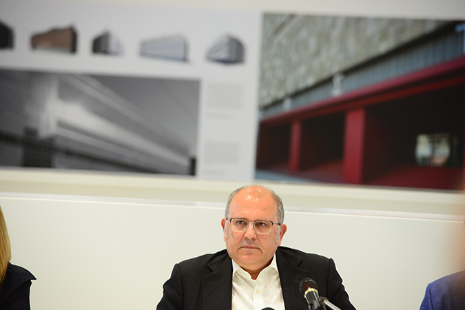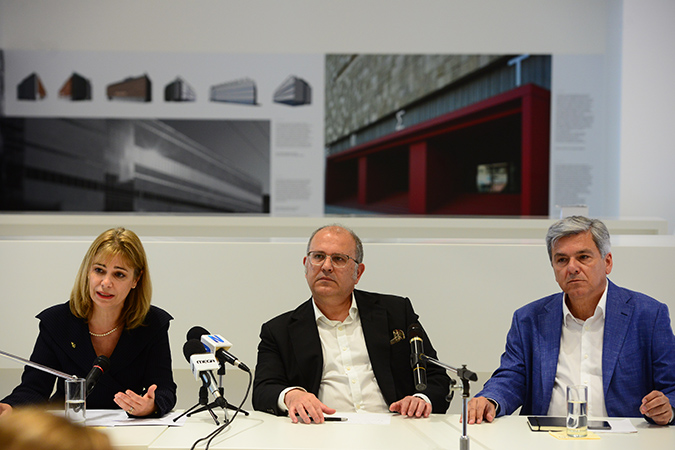 Η διευθύντρια του ΕΜΣΤ Κατερίνα Κοσκινά, ο αναπληρωτής υπουργός Πολιτισμού Νίκος Ξυδάκης και ο πρόεδρος του ΔΣ του ΕΜΣΤ Γιώργος Παπαναστασίου