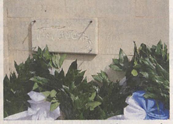 Πωρόλιθος Ύδρας και δάφνες τιμής από την Ελλάδα στο μνήμα-μνημείο με την υπογραφή «Π. Τετσης»