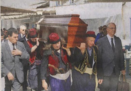 Οι συμπατριώτες «μπουρλοτιέρηδες» πήραν στους ώμους τους, με σέβας, τη σορό...