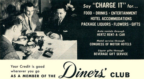 Η ιδέα για την πρώτη πιστωτική κάρτα έγινε το 1950 από έναν Αμερικανό τραπεζίτη, όταν δεν είχε μετρητά να πληρώσει το γεύμα του.... Λέγεται ότι ένα μεσημέρι του 1949, στη Νέα Υόρκη, ο επιχειρηματίας Φράνσις Μακ Ναμάρα πάει τους πελάτες του σε επαγγελματικό γεύμα. Όταν ήρθε ώρα να πληρώσει, συνειδητοποιεί ότι έχει ξεχάσει το πορτοφόλι του και αναγκάζεται να τηλεφωνήσει στη σύζυγό του για να του φέρει χρήματα. Την επόμενη ημέρα, έπεισε τον συνεταίρο του, τον Ραλφ Σνάιντερ, να φτιάξουν την Diners Club, την πρώτη στον κόσμο πιστωτική κάρτα. Το Φεβρουάριο του 1950 επέστρεψε στο συγκεκριμένο εστιατόριο και πλήρωσε για το δείπνο του με την κάρτα. Σύμφωνα με την Diners Club, το γεγονός αυτό είναι γνωστό στη βιομηχανία των πιστωτικών καρτών ως το Πρώτο Δείπνο. Μέσα στην πρώτη χρονιά, 20.000 άνθρωποι υπέβαλαν αίτηση να πάρουν την κάρτα, η οποία έγινε αποδεκτή σε πέντε μεγάλες αμερικανικές πόλεις, σε 400 εστιατόρια, 30 ξενοδοχεία και 200 εταιρείες ενοικίασης αυτοκινήτων. Το 1958, η κάρτα απέκτησε ανταγωνιστή, την American Express.