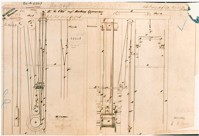 Το 1853, Αμερικανός εφευρέτης Elisha Otis έφτιαξε το πρώτο ασανσέρ εξοπλισμένο με ένα σύστημα ασφαλείας για να αποτρέψει την πτώση σε περίπτωση που ένα καλώδιο υποστήριξης a σπάσει. Το 1853, ο Elisha Otis δημιούργησε μια εταιρεία για την κατασκευή ανελκυστήρων και κατοχύρωσε με δίπλωμα ευρεσιτεχνίας (1861) το ασανσέρ ατμού. Ουσιαστικά, εφηύρε το πρώτο φρένο που χρησιμοποιείται στους σύγχρονες ανελκυστήρες, καθώς η τροχαλία και το αναβατόριο υπήρχαν αιώνες πριν. Η εφεύρεσή του βοήθησε να φτιαχτούν ψηλά κτήρια και μπήκαν τότε στο Flat Iron Building το 1902 και το Empire State Building το 1931. Η εταιρεία υπάρχει μέχρι σήμερα.