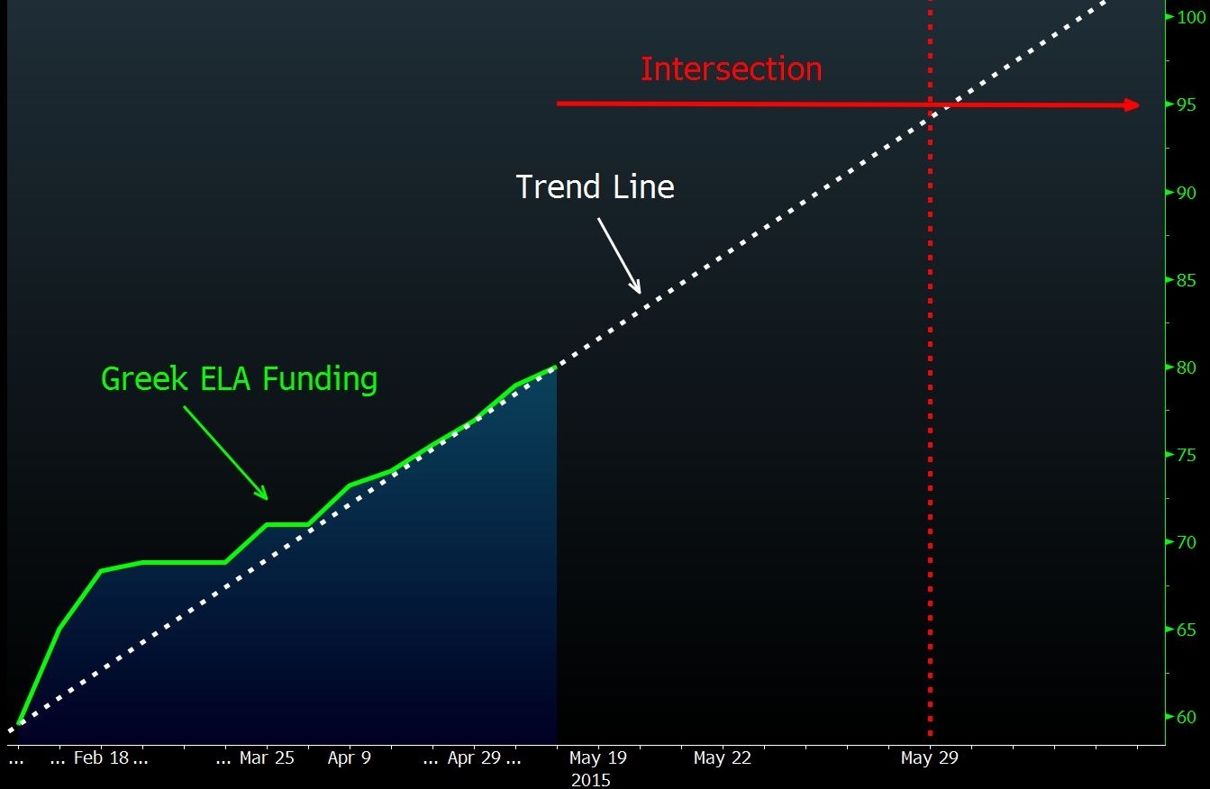 Όπως εξηγεί, οι ελληνικές τράπεζες εξαρτώνται σε μεγάλο βαθμό από τον έκτακτο μηχανισμό ρευστότητας της ΕΚΤ από τον Φεβρουάριο. Η Ελλάδα μπορεί να δανειστεί έως και 95 δισ. ευρώ, από τον ELA, με βάση τα εχέγγυα τους, οπότε με βάση τον ρυθμό απελευθέρωσης των κεφαλαίων η κρίσιμη ημερομηνία είναι 29η Μαϊου.