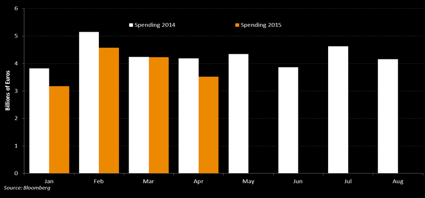Επιπλέον, όπως φαίνεται και στο παρακάτω διάγραμμα η κυβέρνηση κατάφερε να περιορίσει τις δαπάνες σε σχέση με το προηγούμενο έτος.
