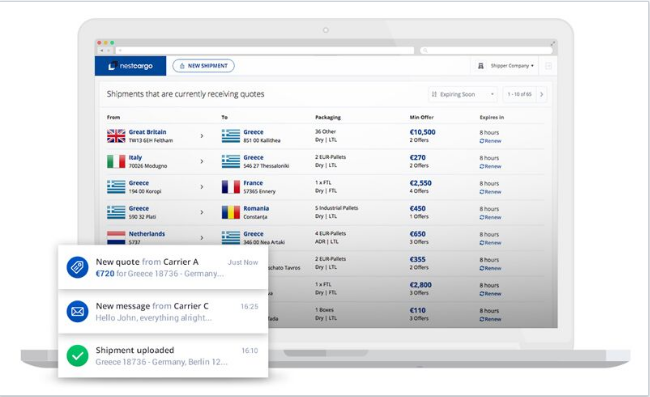 Η πλατφόρμα είναι πολύ φιλική προς τον χρήστη και η διαδικασία διαρκεί πολύ λίγο χρόνο. Μετά τη δημιουργία εταιρικού λογαριασμού στην ηλεκτρονική αγορά της nestcargo ο χρήστης έχει τη δυνατότητα να καταχωρήσει το φορτίο με τα χαρακτηριστικά του σε 2 μόλις λεπτά. Αυτομάτως ειδοποιούνται οι 70 και πλέον συνεργαζόμενες μεταφορικές εταιρείες, οι οποίες έχουν την δυνατότητα να μπουν στην πλατφόρμα , να δουν το φορτίο και να κάνουν δυναμική προσφορά εξειδικευμένα για το φορτίο και τις ανάγκες του.