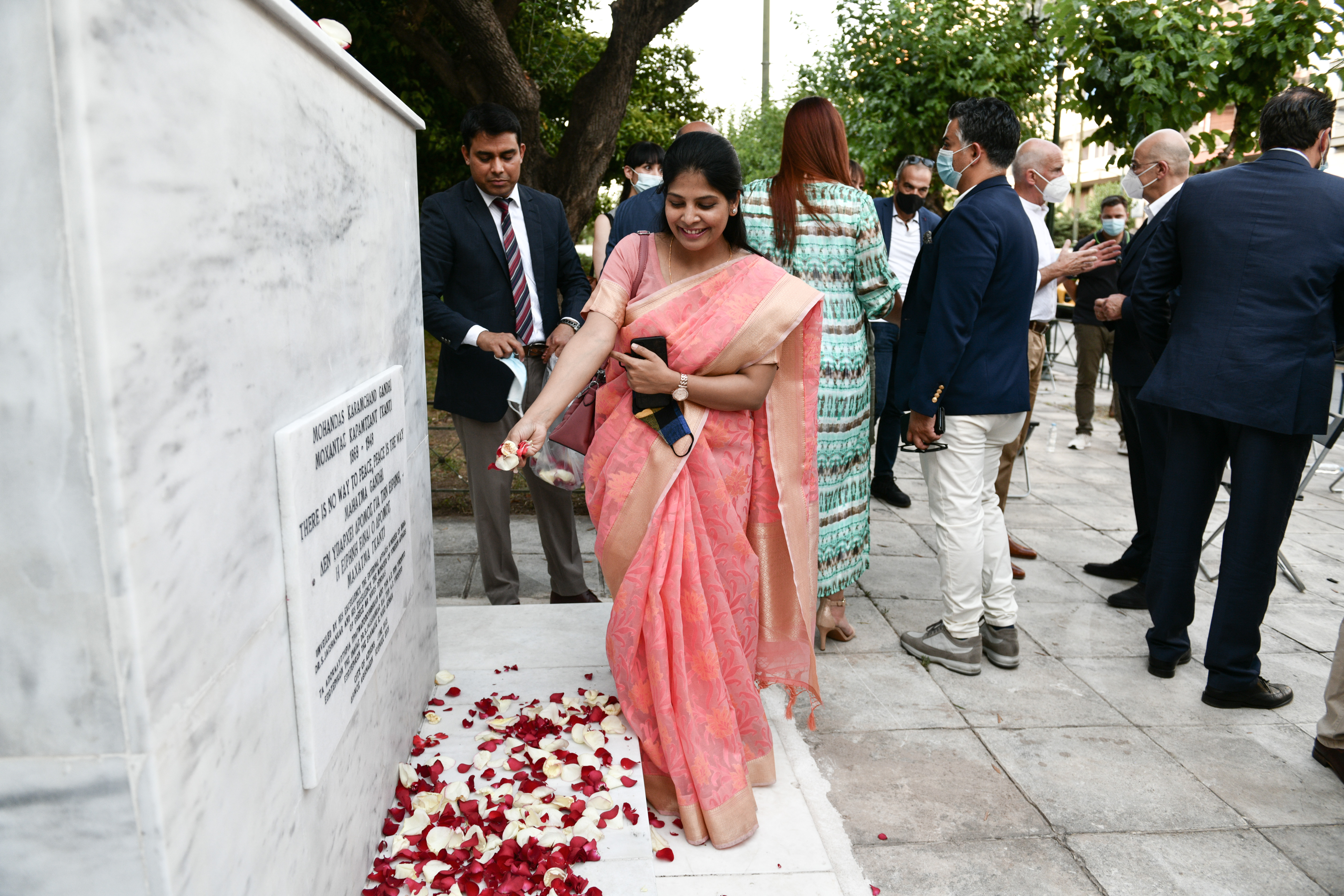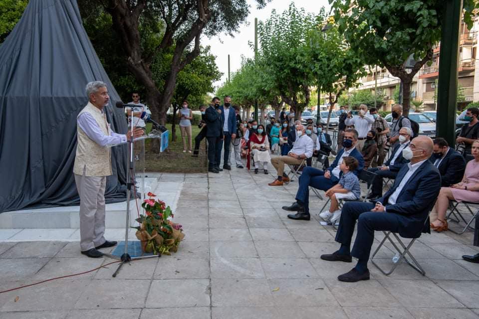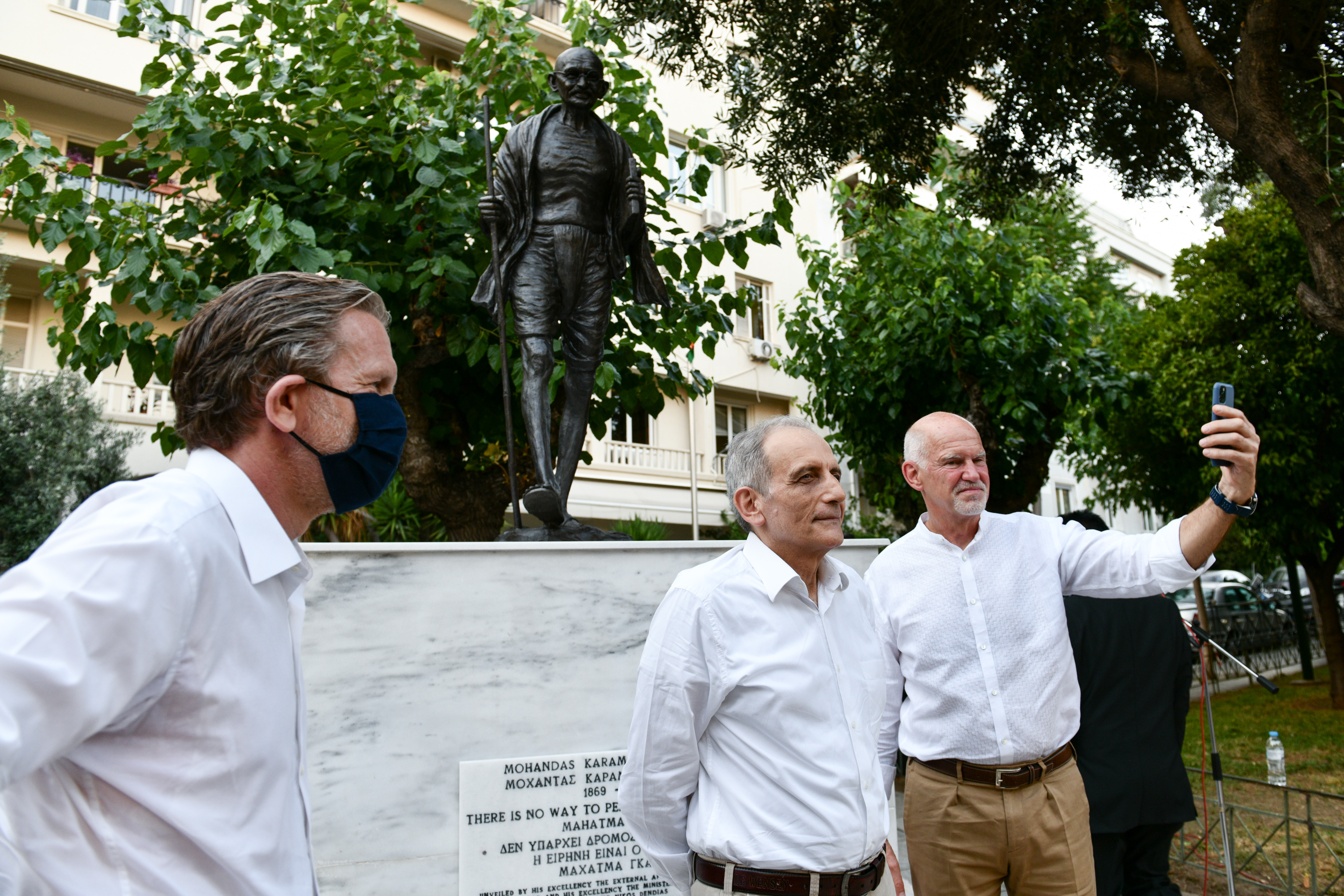 Το απόγευμα του Σαββάτου έγιναν τα αποκαλυπτήρια του ανδριάντα του Μαχάτμα Γκάντι μπροστά από την πρεσβεία της Ινδίας στην Αθήνα. Την εκδήλωση τίμησε με την παρουσία του ο υπουργός Εξωτερικών της Ινδίας, ο οποίος έκανε και τα αποκαλυπτήρια του δημιουργήματος.
