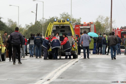 Το ασθενοφόρο στο οποίο επέβαιναν συγκρούστηκε με αυτοκίνητο στο οποίο επέβαιναν δύο νεαρές γυναίκες, βγήκε από τον δρόμο και ανατράπηκε με αποτέλεσμα να εκραγούν οι τρεις φιάλες οξυγόνου που υπήρχαν μέσα.