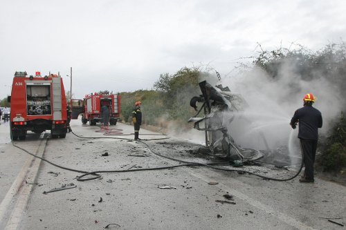 Στην περιοχή επικράτησε πανικός, καθώς οι διερχόμενοι οδηγοί που σταμάτησαν για να βοηθήσουν τους εγκλωβισμένους επιβάτες δεν μπορούσαν να πλησιάσουν το φλεγόμενο ασθενοφόρο. Αμέσως έφτασαν δύο οχήματα της Πυροσβεστικής, τα πληρώματα των οποίων έσβησαν τη φωτιά αλλά ήδη ήταν αργά για τα δυο στελέχη του ΕΚΑΒ.