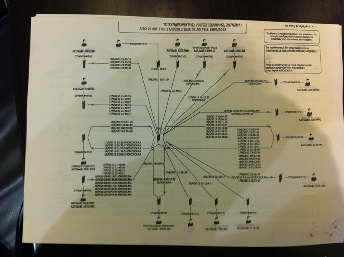 Μισή ώρα το αργότερο αφότου ο Παύλος Φύσσας υπέστη τις φονικές μαχαιριές, ο αρχηγός της Χρυσής Αυγής, Νίκος Μιχαλολιάκος, ήξερε για τη δολοφονία, όπως αποκαλύπτεται από την ανάλυση των τηλεφωνικών κλήσεων που αντάλλαξαν βουλευτές και στελέχη της οργάνωσης εκείνη τη μοιραία νύχτα. Η ιεραρχία ακολουθήθηκε κατά γράμμα... Όπως περιγράφουν οι μάρτυρες, η οργάνωση λειτούργησε κατά τα στρατιωτικά πρότυπα. Αμέσως μετά τη δολοφονία Φύσσα ο πυρηνάρχης της Νίκαιας, Γιώργος Πατέλης, ως όφειλε ενημέρωσε τον βουλευτή-υπεύθυνο για την περιοχή Γιάννη Λαγό.